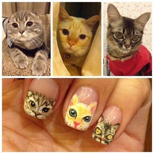 Nothing says ‘crazy cat lady’ better than painting your cats on your nails. She actually did a pretty good job until the third one.. looks like it’s about to shoot lasers from it’s eyes! *pew pew*