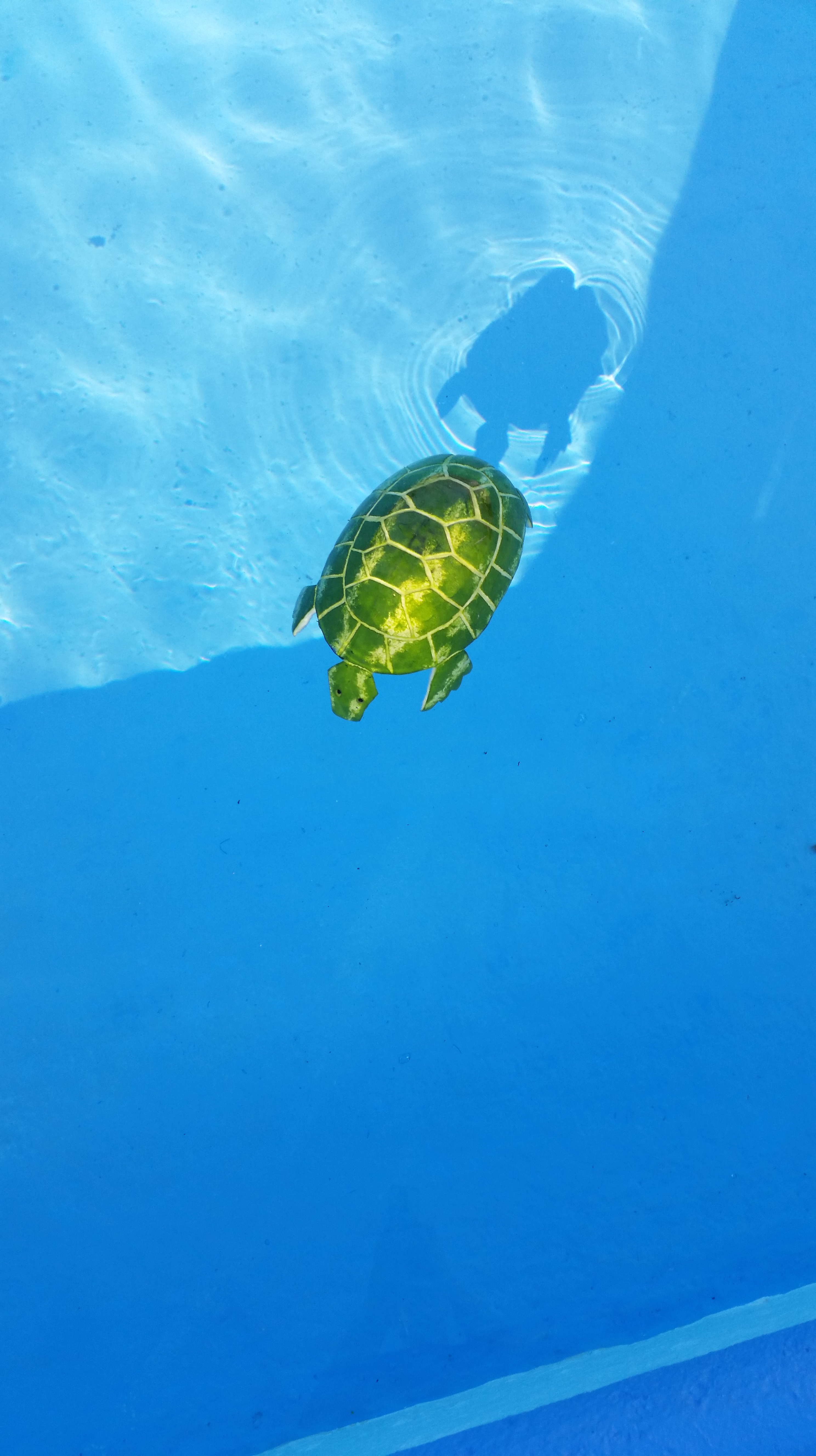 My kids carved a turtle from a watermelon. So the age-old question of whether watermelon turtles float or not is answered!